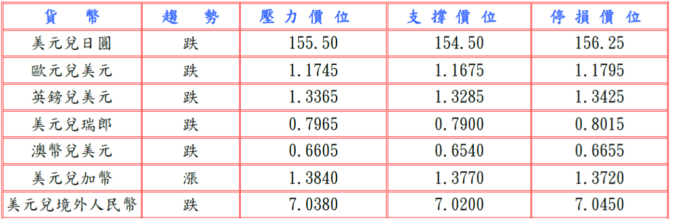 隨後日本首相高市早苗稱,必須採取積極財政支出而非過度財政緊縮,以推動經濟增長和稅收增加,並據FED理事沃勒表示,美國就業市場疲軟狀態不斷加劇,FED仍有降息空間,與亞特蘭大聯邦儲備銀行總裁博斯蒂不認為FED上周降息合理及預計明年不會進一步降低借貸成本形成對比,而且美國週四發布消費者物價指數(CPI)引發美元空倉回補,兌日圓回升至155.75高點。預估今日美元兌日圓阻力於155.50-70,支撐於154.50-70。